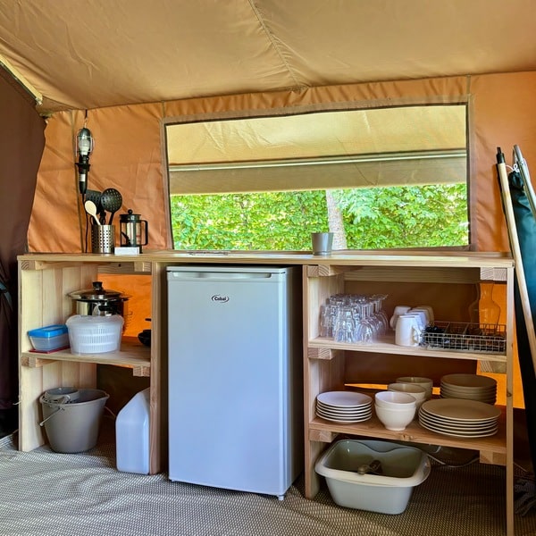 The camping spirit, with comfort as a bonus! This converted tent is the perfect compromise between a stay in a tent as close to nature as possible and a comfortable stay. This tent has no sanitary facilities: communal campsite sanitary facilities.