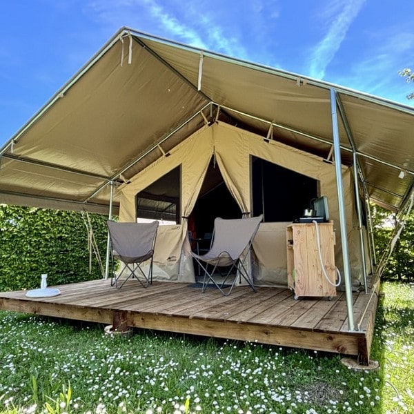 De camping spirit, met comfort als bonus! Deze omgebouwde tent is het perfecte compromis tussen een verblijf in een tent zo dicht mogelijk bij de natuur en een comfortabel verblijf. Deze tent heeft geen sanitair: gemeenschappelijk sanitair op de camping.